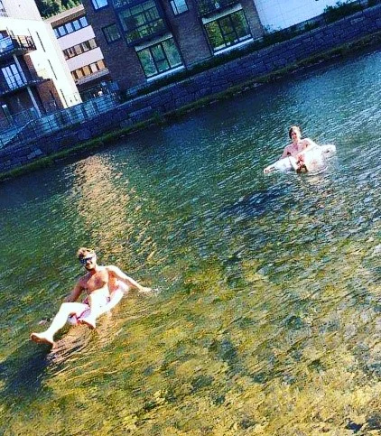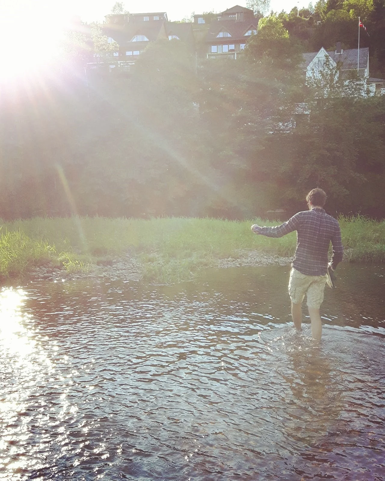 Etter ein varm dag på kontoret trengte vi å koble av. Vårt første møte med elva i Førde var så vellykka at vi bestemte oss for å rafte ned elva. Vi starta ved sjukehuset og rafta på kvar vår gummibåt ned til sentrum. Tilrådast.